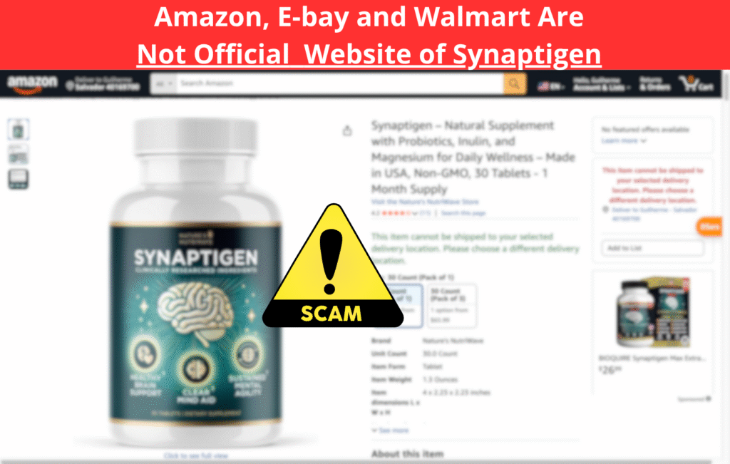 Through extensive research, our team found multiple complaints from customers who ordered Synaptigen from third-party stores like Amazon, Walmart, or eBay. Many reported receiving counterfeit bottles with different ingredients, altered labels, and no real results — some even mentioned adverse reactions due to unknown substances.
